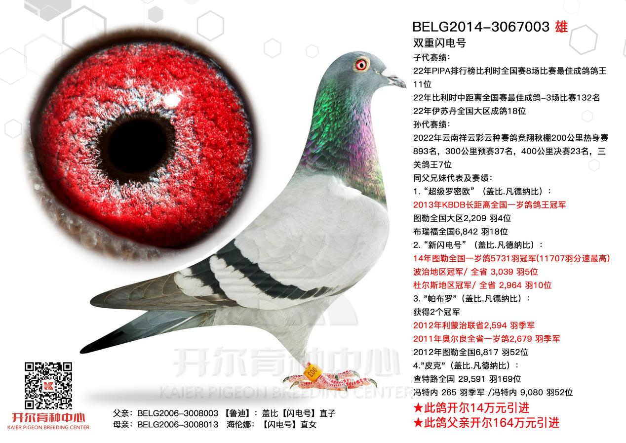 它的母亲则是大铭鸽“闪电号”双重回血,盖比【闪电号】直子【鲁迪】与【闪电号】直女【海伦娜】共同作育后代【双重闪电号】!子代曾获得22年伊苏丹全国大区成鸽18位。