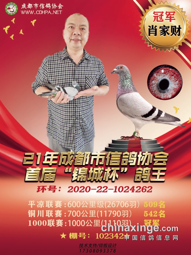 2、第4届“锦城杯”联赛鸽王(600+700+1000公里)