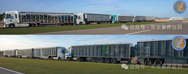 这约50000羽信鸽是5月2日由13辆TIR卡车装载离开葡萄牙,前往西班牙瓦伦西亚的。这些卡车配备齐全,准备充分,以确保鸽子的舒适和安全,3日下午抵达瓦伦西亚,经过一夜的休息和恢复后,于4日上午同时放飞。4日下午,每家鸽棚将自己家里第一羽归巢赛鸽送往各自的鸽会或俱乐部报到,参加葡萄牙全国的排名比赛得出成绩。