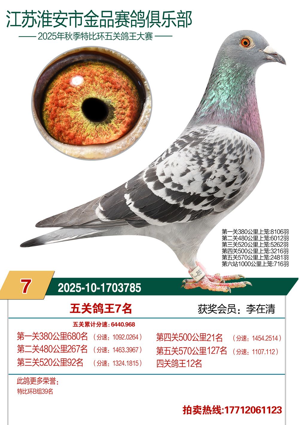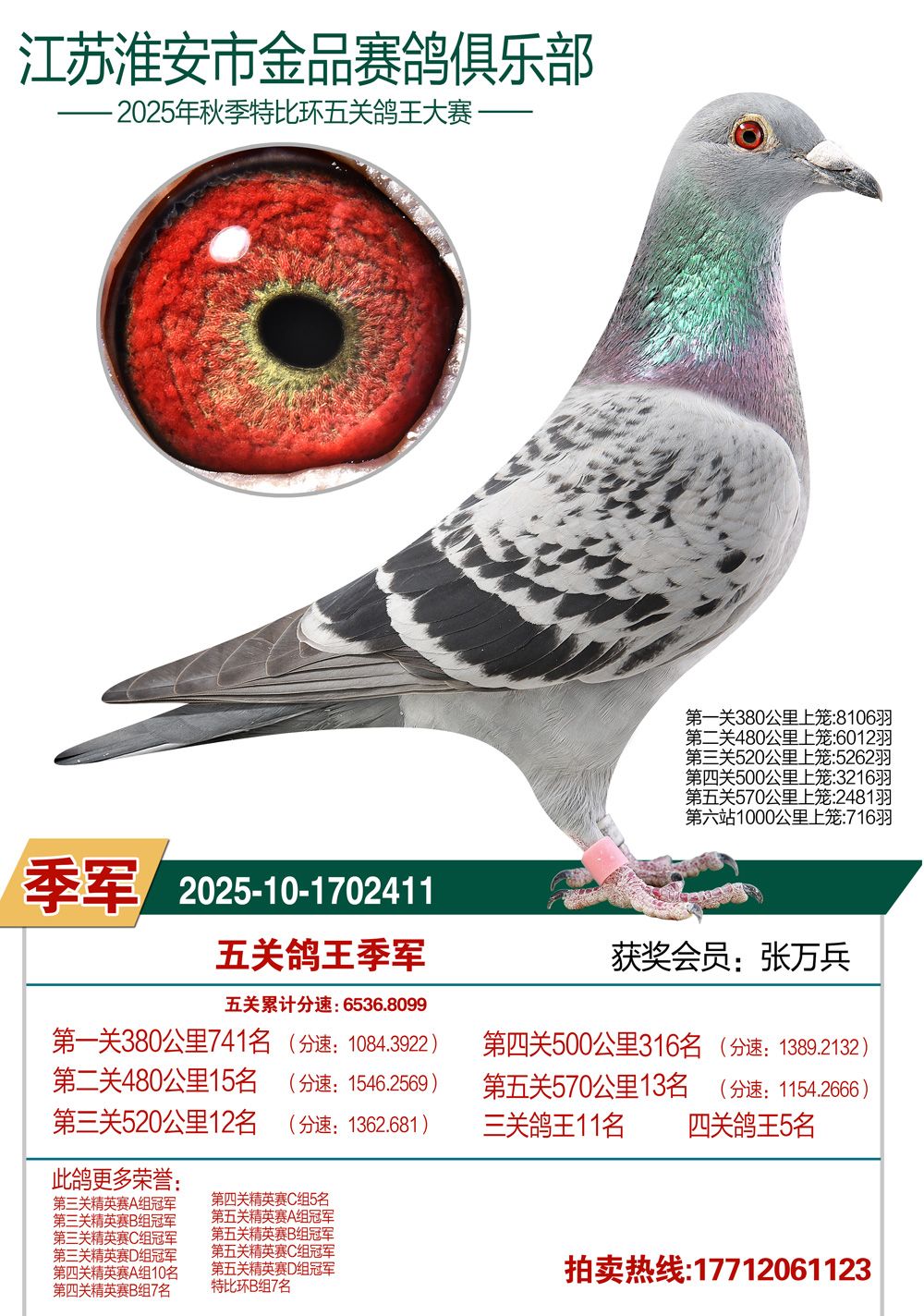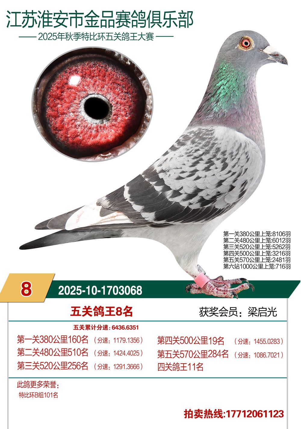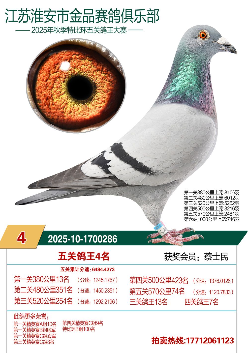 拍卖顺序:单关14羽、决赛1—200名、三关鸽王5羽、五关鸽王1—100名、千公里1—12名