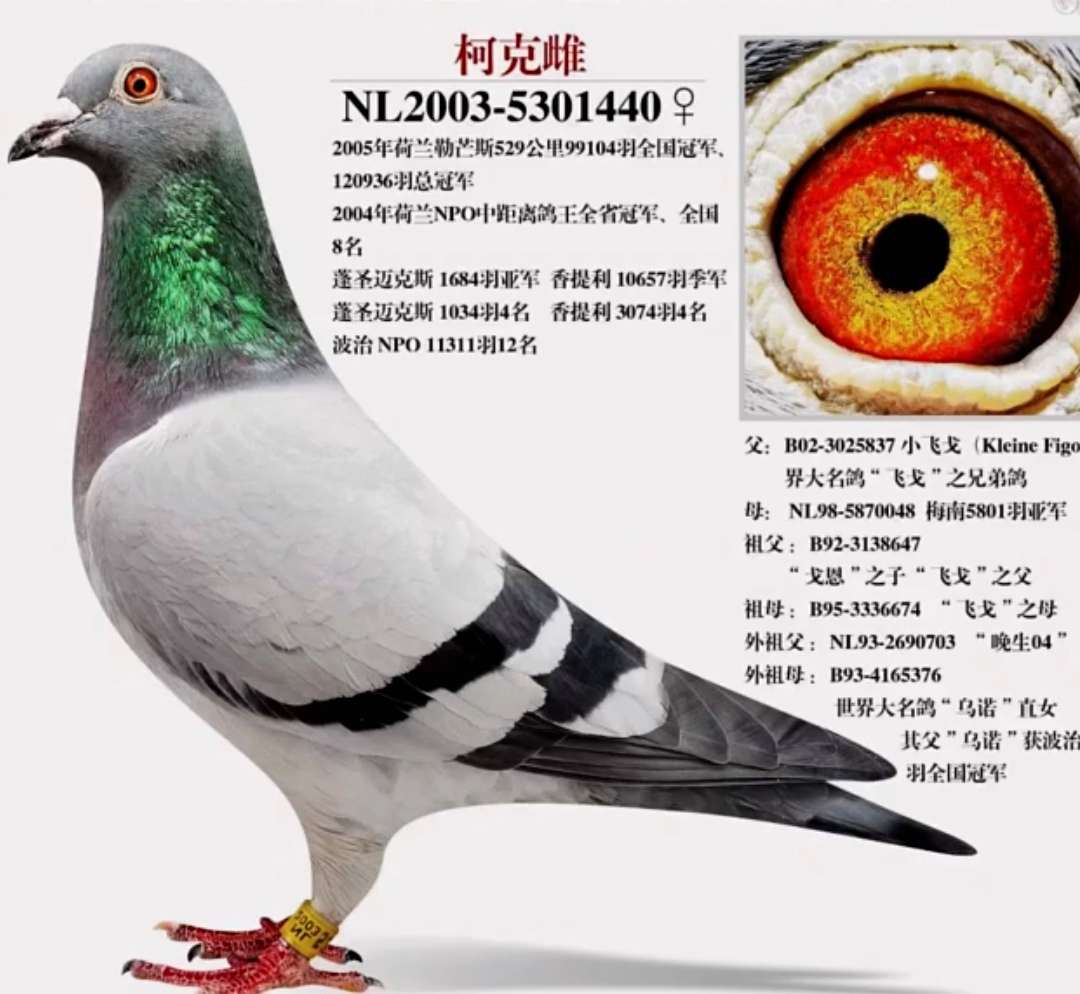 此外,勒芒斯比赛的亚军“响马”同样出自波西瓦鸽舍。冠亚军同属一人,自此也让波西瓦一战封神,跃居荷兰鸽坛第一人。其鸽系身价倍增,引得买家争相高价求购。这一切荣耀的背后,离不开强大的血统支撑。“柯克雌”出自波西瓦鸽系的黄金血脉,经此一役后,其父“小飞戈”也声名远播。