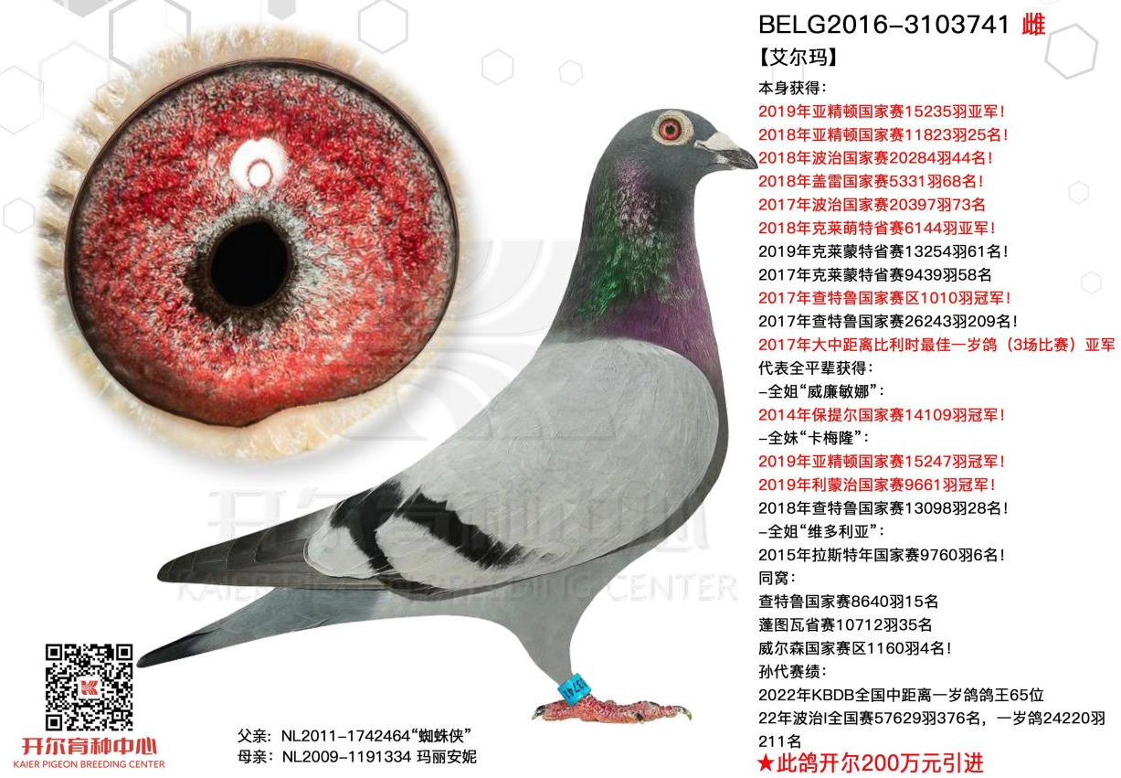 这样的冠军家族,自然不会被埋没。不久后,卡梅隆与威廉敏娜、艾尔玛三姐妹,以彼时赛鸽史最高成交价——630万,落户开尔,续写血脉荣光。