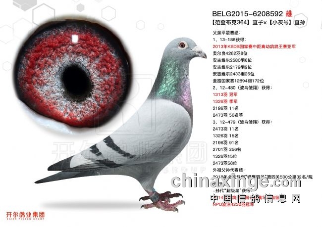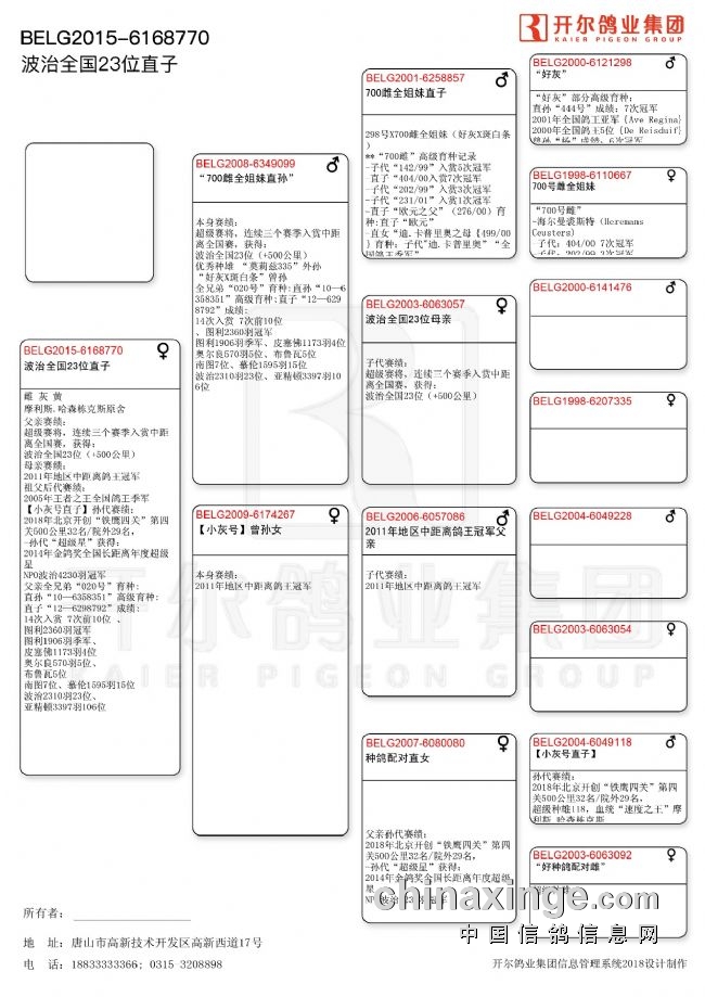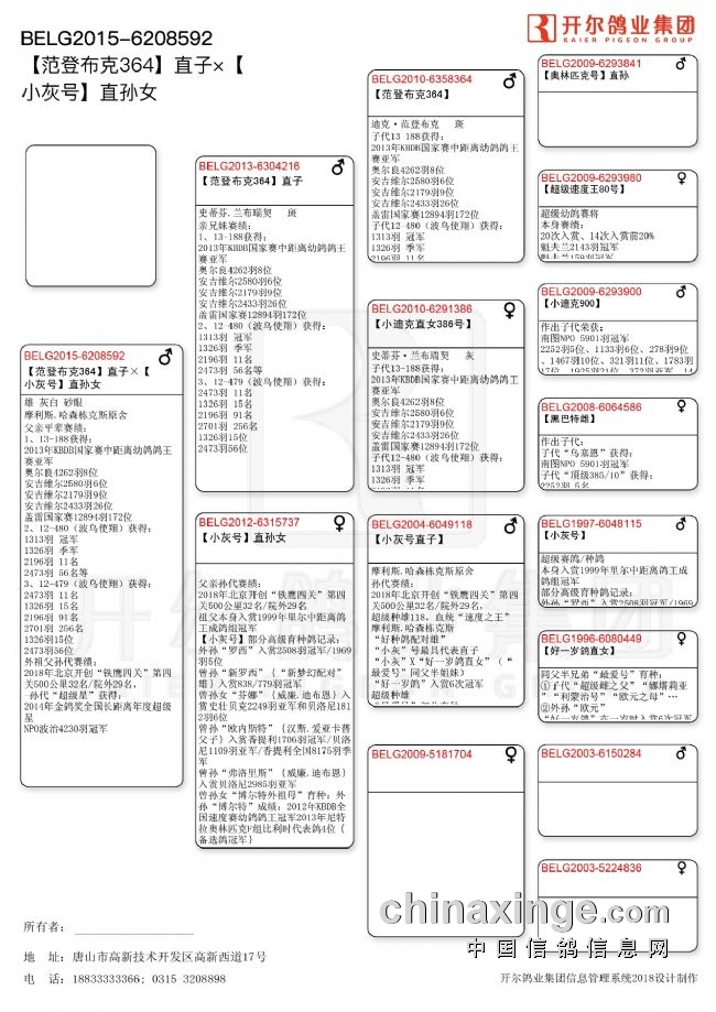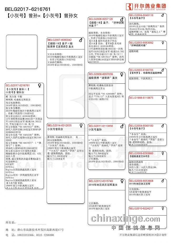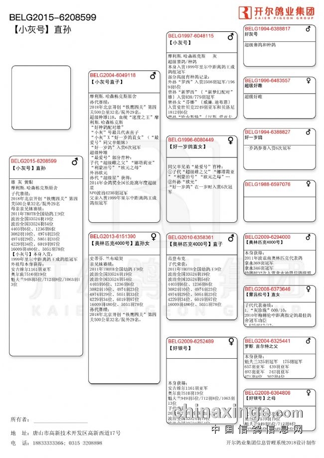 2019年1月16日开尔鸽业原环拍卖会上隆重推出4羽哈森栋克铭血,每羽都是由开尔鸽业集团邢伟董事长在莫利斯·哈森栋克先生鸽舍精心挑选,诚邀全国鸽友莅临鉴赏。