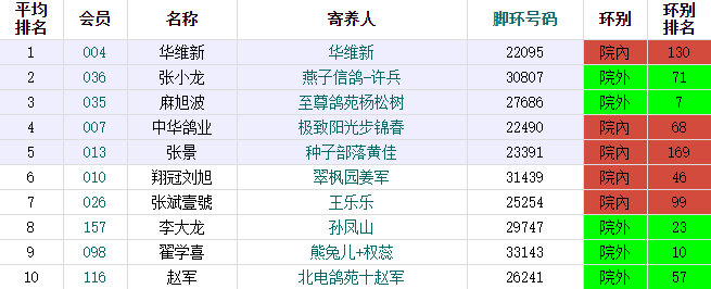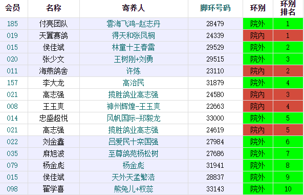 最新消息:截至5月24日上午11时许,已有800多羽赛鸽归巢。雲海飞鸿-赵志丹的一羽环号为26653的赛鸽以1651.29376米/分,空距933.16385公里暂列院外第一,得天和张凤桐是一羽环号为24339的赛鸽以1639.20597米/分,空距1476.94335公里暂列院内第一。