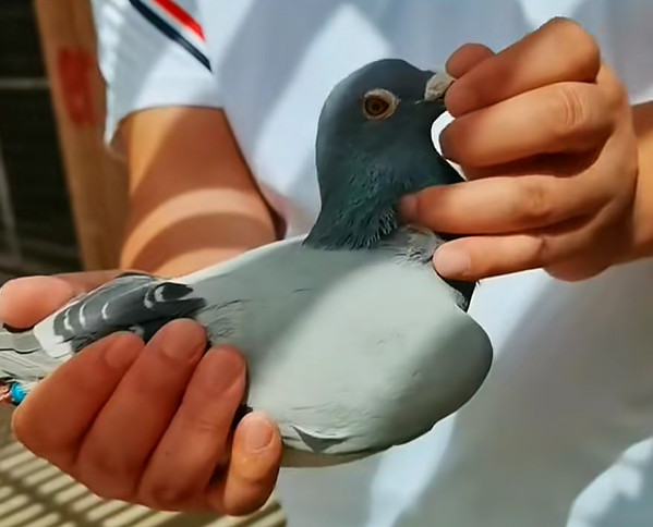 它是宁夏万宸赛鸽公棚2022年的一羽参赛鸽,环号2021-05-0283383,为鲲鹏鸽業-吕黄超+张勇麾下勇士。这羽神鸟,200公里热身赛拿到5354名的垫底成绩,不过后两场比赛让你大跌眼镜:300公里、400公里连拿两个冠军,可惜在最后的绝杀关未能入赏,遗憾没有“美颜”照片。但幸运的是决赛放飞次日它顺利归巢,获得1920名,能够回到鸽主怀抱。