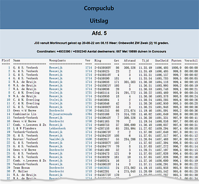 3. NL2022-8459318 | 2022年默林克尔300公里 | 19899羽NPO幼鸽赛季军 | 杜弗尔?5171羽?34名 | 魁夫兰?27343羽?179名