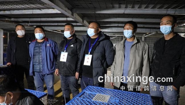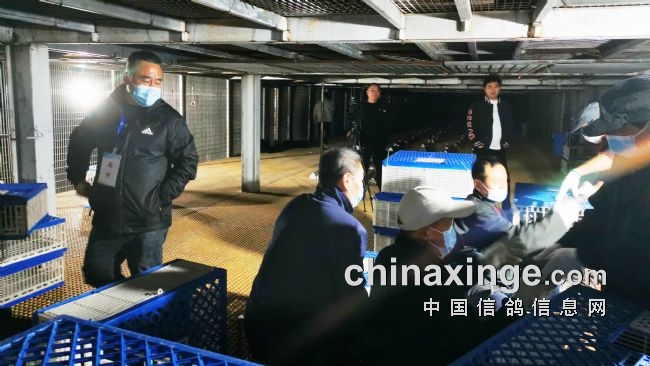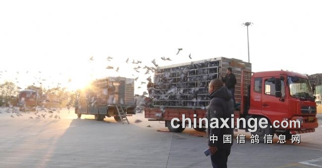 10月12日早,监放裁判长依次检查鸽车铅封,核对铅封号,赛鸽于6点48分开龙放飞,开龙后,鸽群定向准确,走势良好。