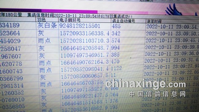 19分钟之内,前一百名成绩报满,后面的赛鸽还在不断归巢中。