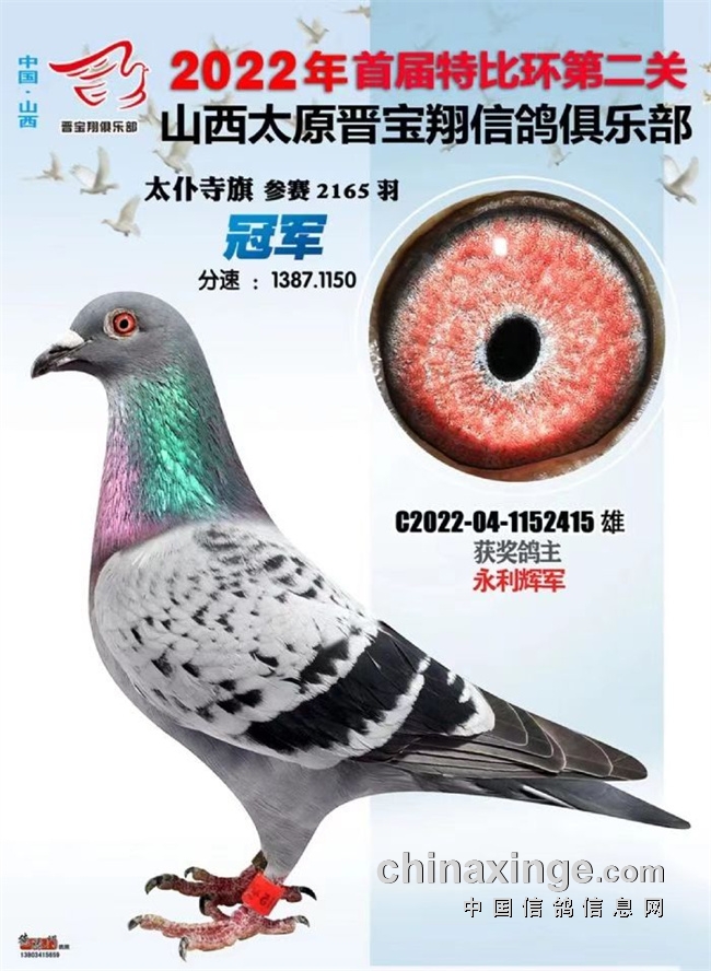 10月5日,鸽友永利辉军获得山西晋宝翔特比环第二关冠军!