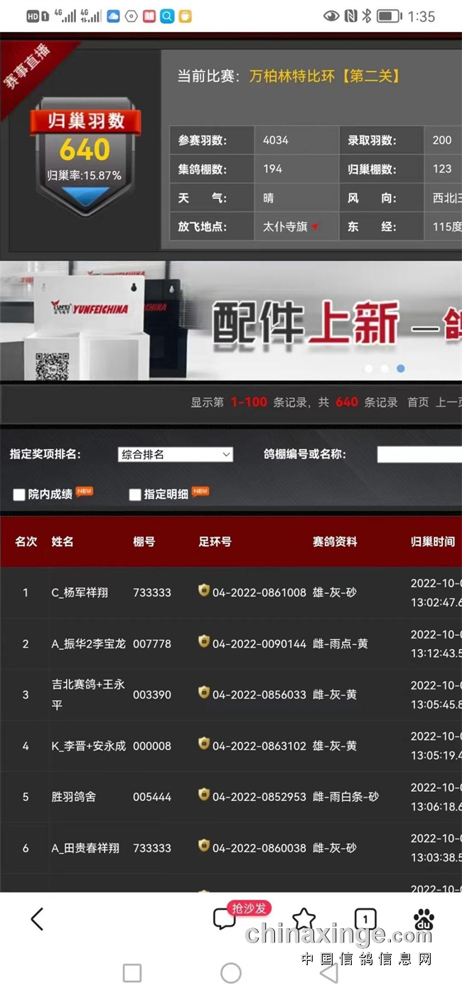 赛场上局势焦灼,场外的鸽主内心也十分紧张,期盼着自己家爱鸽能够安全归巢,取得高位赛绩!在此期间开尔也在不断收到鸽友发来的捷报!