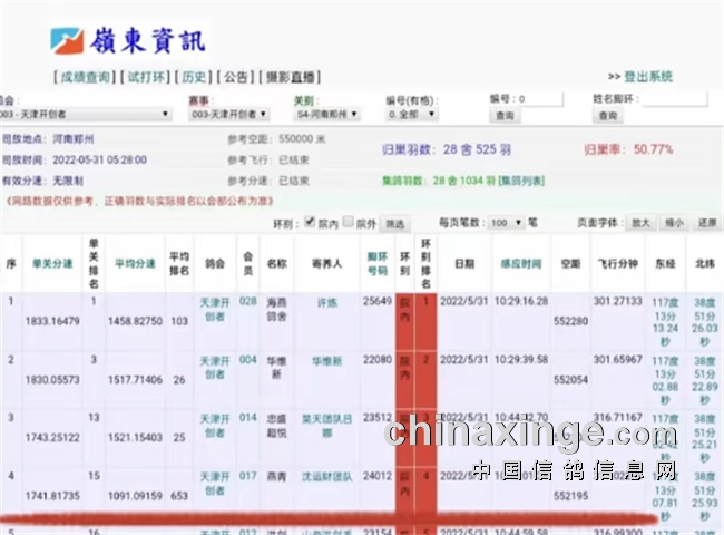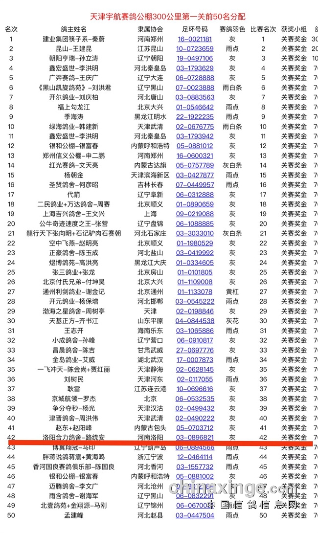 直至本文发布当天早上,仍有高位赛绩鸽友不断传来捷报,洛阳合力鸽舍-路统安获得2022年天津宇航300公里第一关9930羽42名!