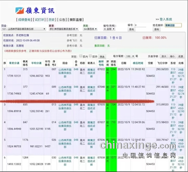 10月9日山西神齐收官,鸽友隆翼庄园再次传来喜讯,隆翼庄园获得山西神齐四关综合鸽王69名!