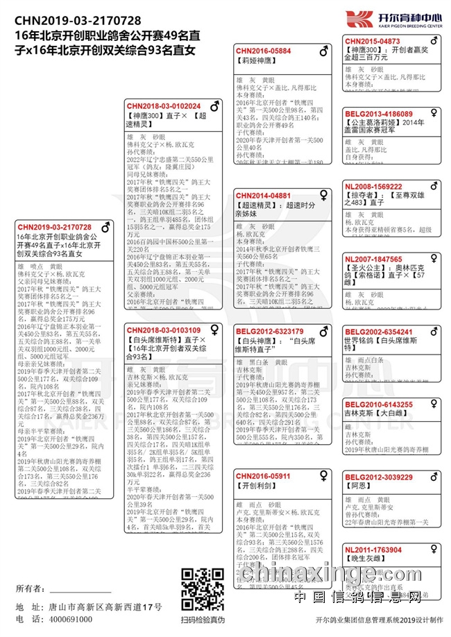 这羽神奇赛将的父亲则出自开尔【新鸽王】杨·阿腾与杨·欧瓦克合作血系!