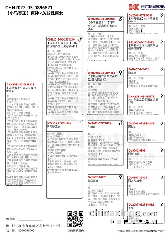 【小马赛王】X08中距离幼鸽省鸽王冠军【玛莉卡】与15年银水寄养棚第三关17名,三关综合6名共同作育。