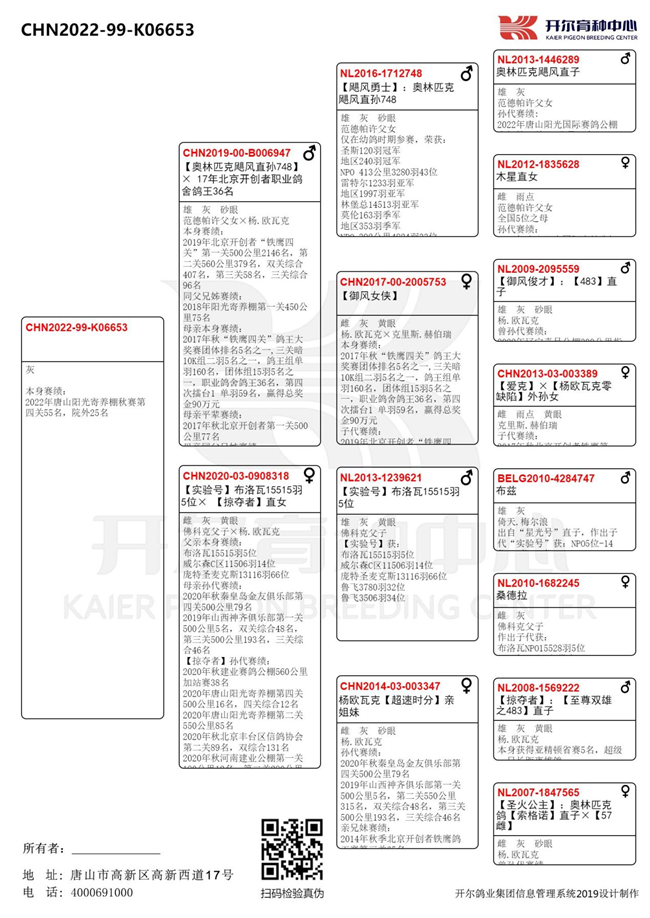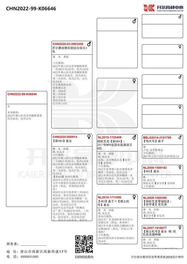 这羽小将也是出自开尔杨欧瓦克名族,它的父亲是开尔赛鸽俱乐部综合鸽王4名,母亲是出自杨·欧瓦克2017年NPO全国长距离鸽王8位【新484】:与杨·欧瓦克关键种雌【推土机号】直女作育而出的【新484】直女。