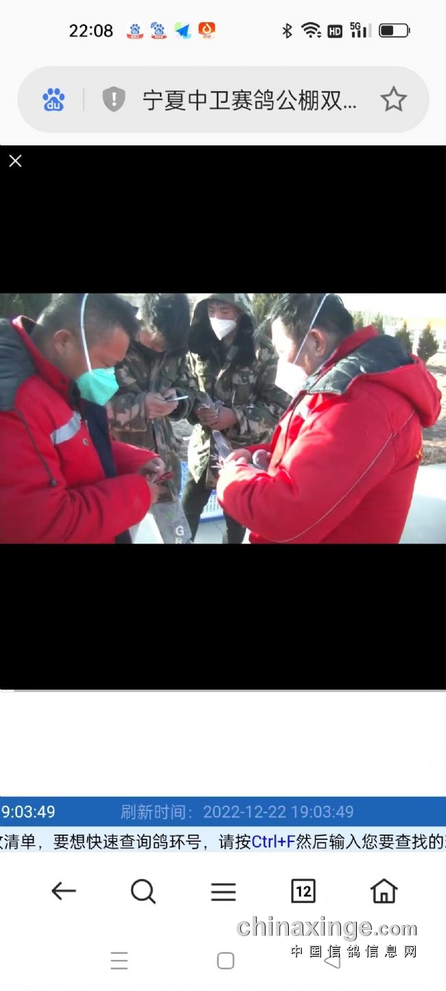 第一关于12月15日8时06分在陕西华阴开笼,上笼羽数9163羽,归巢5479羽。第二关于22日8时15分在陕西潼关开笼,前十名鸽主分别为: