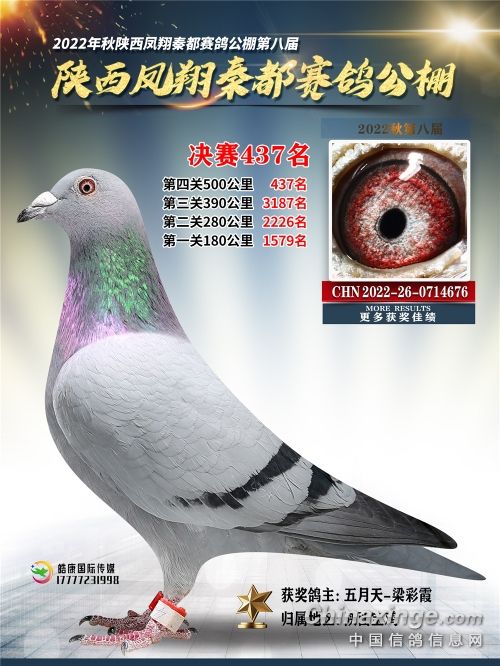 配对中的雌鸽是白爪雄的外孙女,自身获得2022年秋季陕西凤翔秦都公棚500km决赛第437名,它的父亲是超霸194,母亲是白爪雄的女儿公棚三关鸽王第七名,这羽三关鸽王第七名是由白爪雄配公棚500km决赛第16名作出。