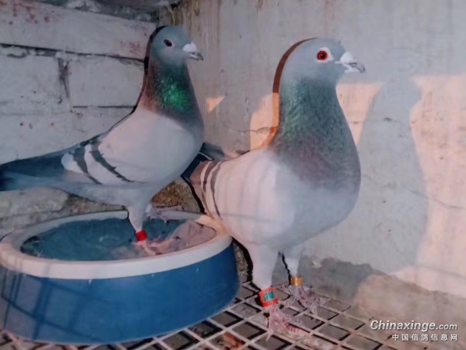 该配对当中的纯瓦灰白爪雄是2013年鸽子,体型偏小像雌鸽,干瘦型全身没有太多余肉,另羽毛光滑似绸缎。它配不同雌鸽已作育出了多羽公棚和地方赛获奖鸽,比如公棚决赛17名,公棚530km加关赛18名,公棚三关鸽王第七名(一关104名,二关153名,三关149名),寄养棚500km决赛第24名和41名,以及地方赛四关鸽王季军等等。