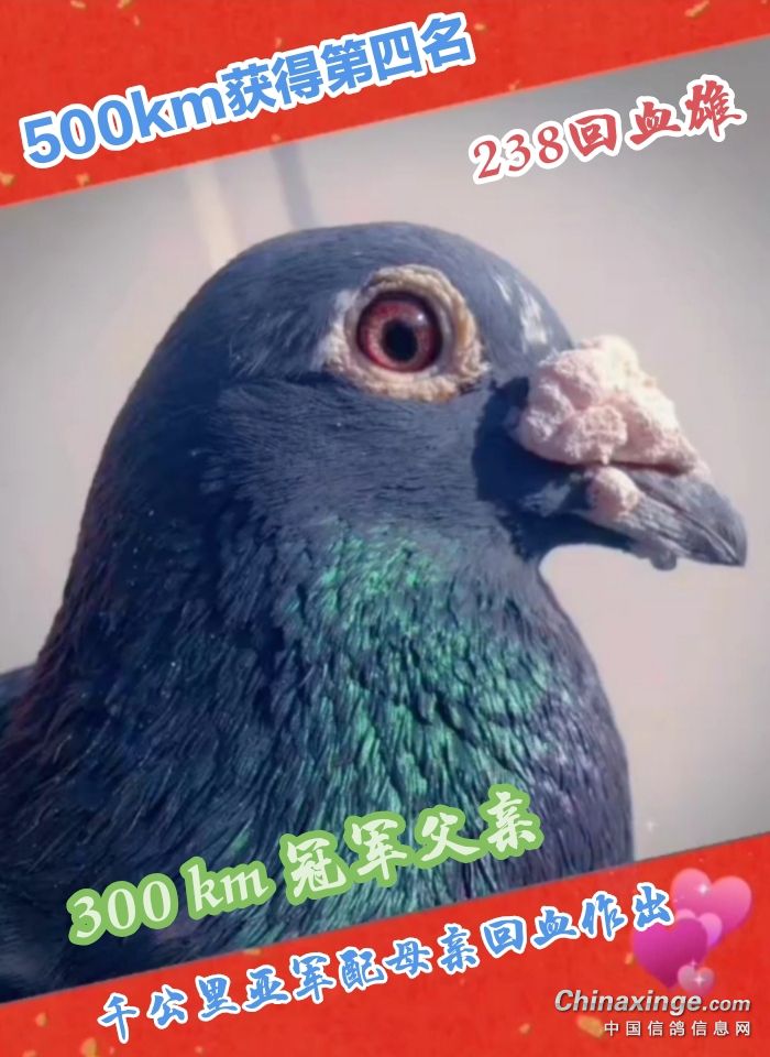 它自身获得500km比赛第四名,也曾作出过300km冠军等成绩鸽。去年配超霸109的女儿,作出两羽子代在春棚里,足环尾号分别是707和963,707是灰白条,963是雨白条。