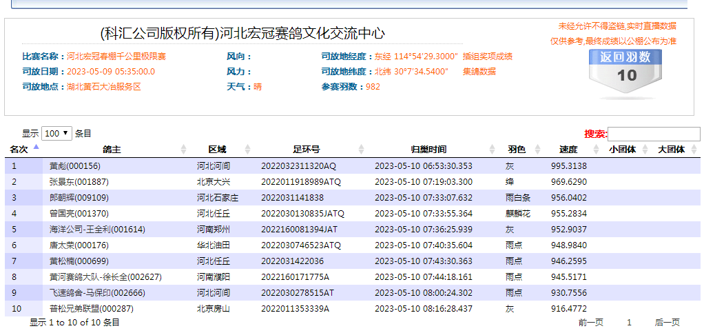 河北宏冠赛鸽春棚参赛名鸽汇集,高手云集,千公里挑战赛赛鸽还在陆续归返中,以期待完成竞翔梦想和壮举。