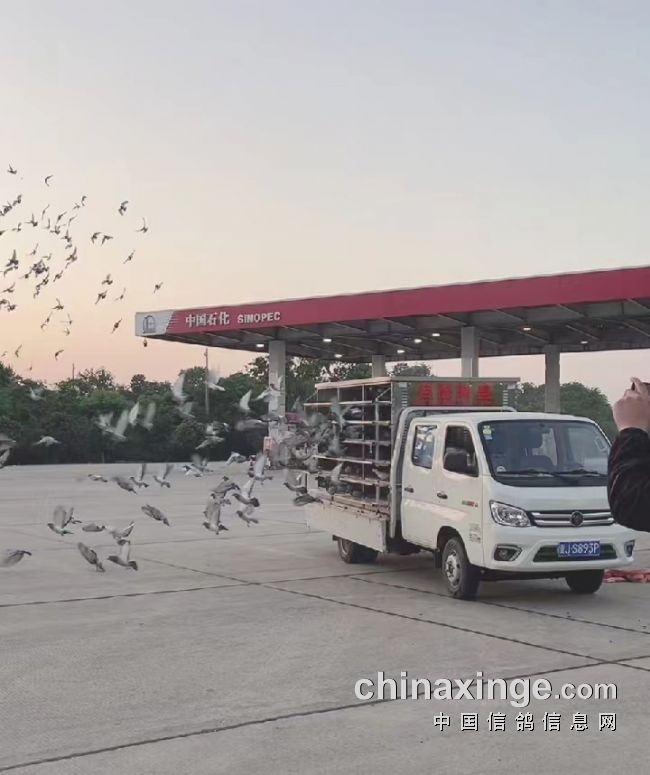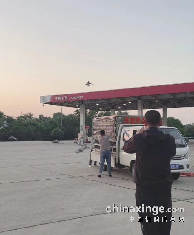 5月9日早晨5点35分,放飞地湖北黄石大冶服务区,天气晴,南风,只听司放员高喊开笼,赛鸽直冲蓝天,向北方疾驰飞去,赛鸽定向特别好。
